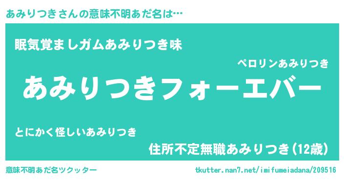 | 胡散臭い通販商品みたいなあだ名 | 『運命の人と巡り会える高級そうな壺…その名も「あみりつき」』 |
