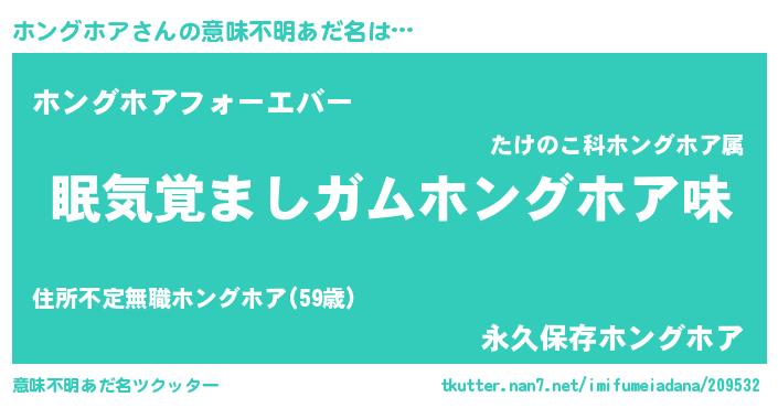 | ヘコむあだ名 | 『豆乳』『ホングホア(笑)』『ホンお』 |