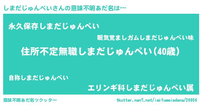| 胡散臭い通販商品みたいなあだ名 | 『あなたにだけ特別に提供する限定10本のレアな日本酒…その名も「しまだじゅんぺい」』 |