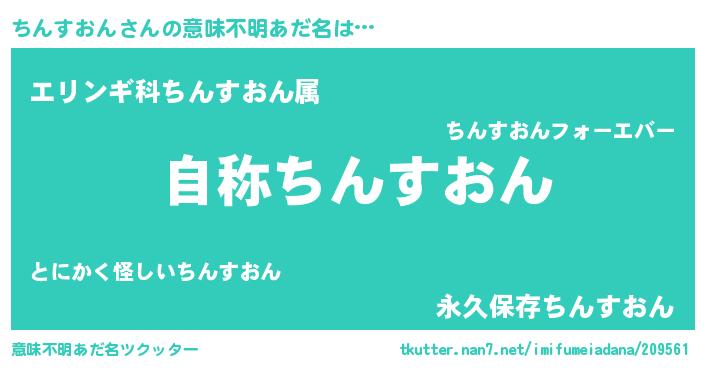 | 男性向けラノベタイトル風あだ名 | 『Re:ちんすおんから始める異世界生活』 |