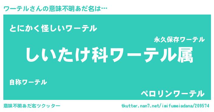 | 男性向けラノベタイトル風あだ名 | 『ワーテルスレイヤー』『ワーテルの憂鬱』 |
