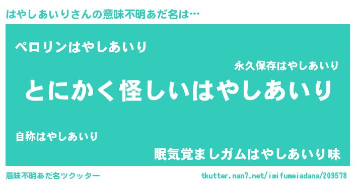 | 欧米人風あだ名 | 『ウサインはやしあいり』 |
