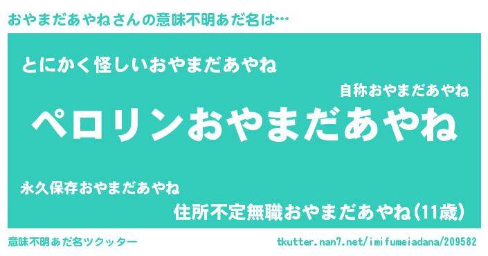 | 胡散臭い通販商品みたいなあだ名 | 『億万長者になれる霊験あらたかなお札…その名も「おやまだあやね」』 |