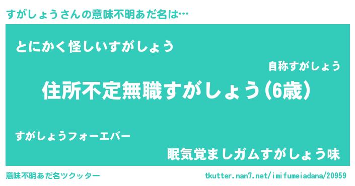 | 男性向けラノベタイトル風あだ名 | 『この素晴らしい世界にすがしょうを!』 |