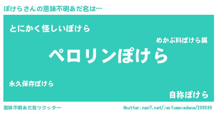 | 男性向けラノベタイトル風あだ名 | 『ぽけらの憂鬱』『はたらくぽけらさま!』 |