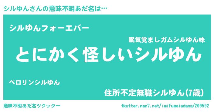 | ヒーロー風カッコイイあだ名 | 『黄金騎士シル』『ウルトラシルゆんマン』 |