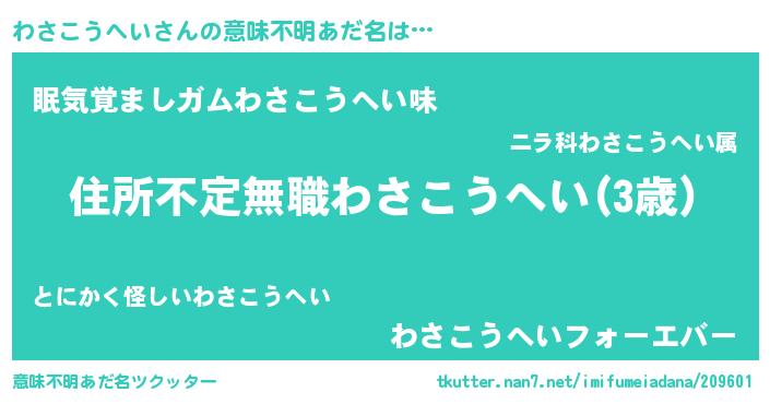 | 男性向けラノベタイトル風あだ名 | 『この素晴らしい世界にわさこうへいを!』 |