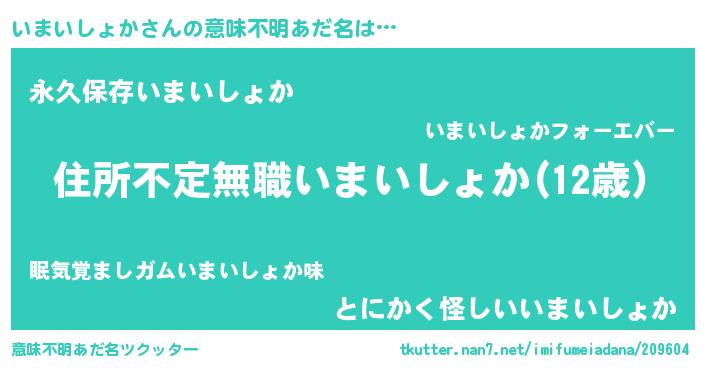 | 男性向けラノベタイトル風あだ名 | 『この素晴らしい世界にいまいしょかを!』 |