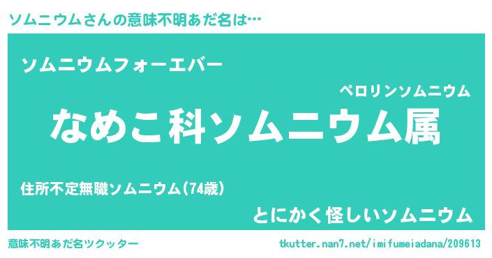 | ヘコむあだ名 | 『なまこ酢』『ソム太郎』『ソムもー』 |