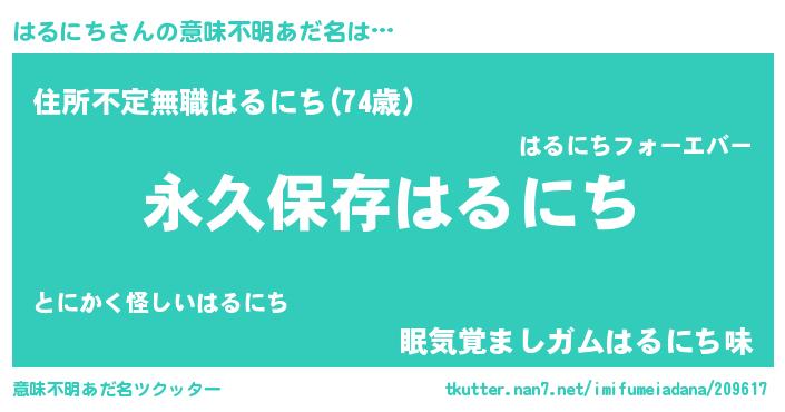 | 胡散臭い通販商品みたいなあだ名 | 『来世でも幸せになれる水素水…その名も「はるにち」』 |
