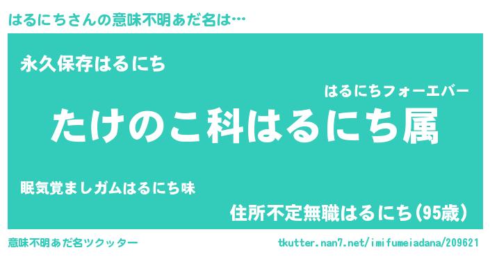| 男性向けラノベタイトル風あだ名 | 『転生したらはるにちだった件』 |