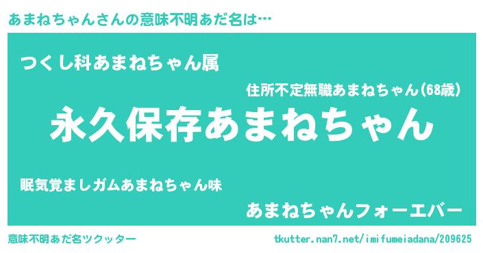 | 胡散臭い通販商品みたいなあだ名 | 『絶対に幸福をもたらす水素水…その名も「あまねちゃん」』 |