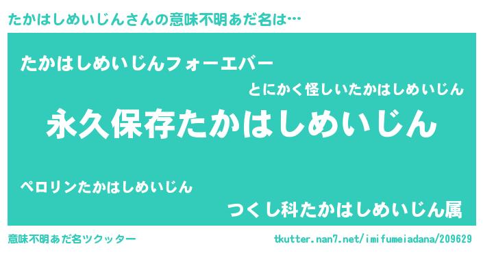 | ヘコむあだ名 | 『たかはしめいじん(笑)』『酢こんぶ』 |
