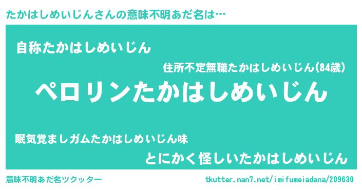 | 女子向けラノベタイトル風あだ名 | 『(仮)たかはしめいじんのやんごとなき事情』 |