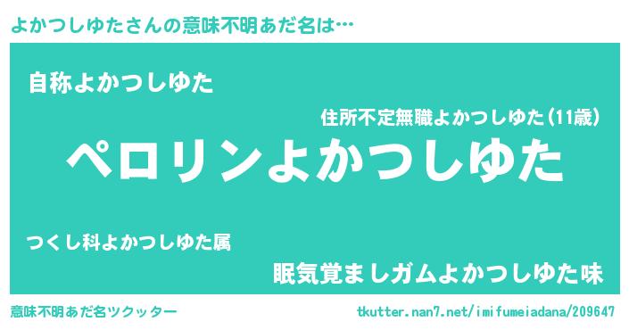 | 男性向けラノベタイトル風あだ名 | 『ヨカツシユタアートオンライン』 |