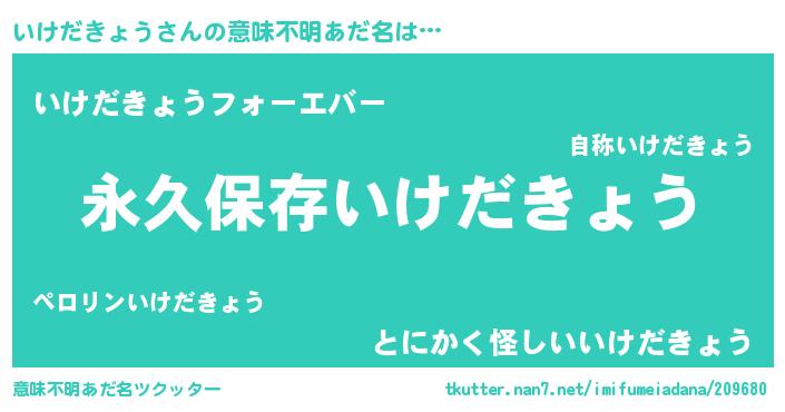 | 男性向けラノベタイトル風あだ名 | 『いけだきょうという概念が存在しない退屈な世界 』 |