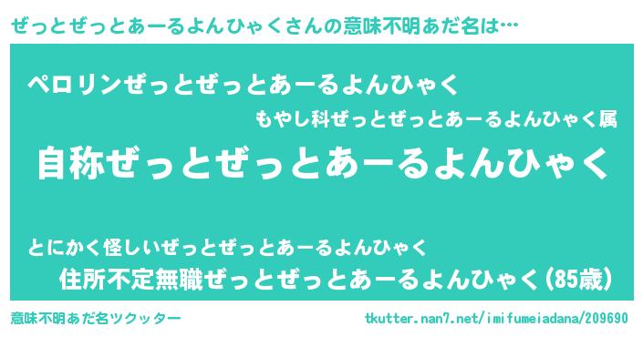 | 肩書あだ名 | 『ぜっとぜっとあーるよんひゃく閣下』 |