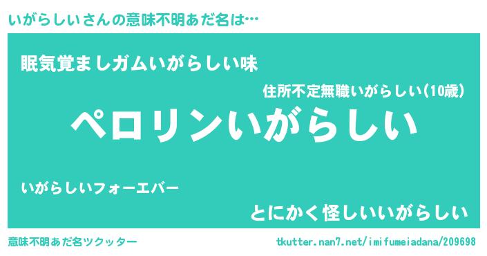| ヒーロー風カッコイイあだ名 | 『スーパーイガラシイ』『魔戒騎士イガ』 |
