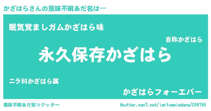 | 男性向けラノベタイトル風あだ名 | 『かざはらという概念が存在しない退屈な世界 』 |