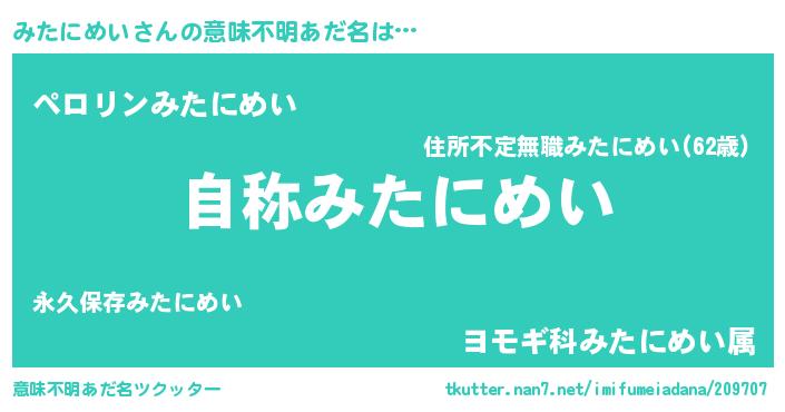 | ヒーロー風カッコイイあだ名 | 『最強戦士ミタニメイ』『仮面ミタダー』 |