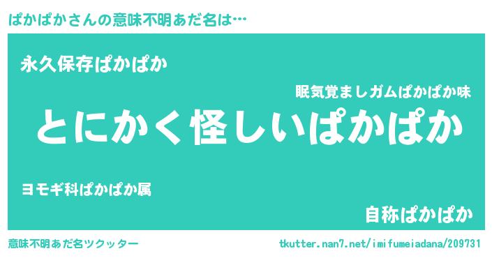 | ヒーロー風カッコイイあだ名 | 『魔戒騎士パカ』『ネオパカパカ』 |
