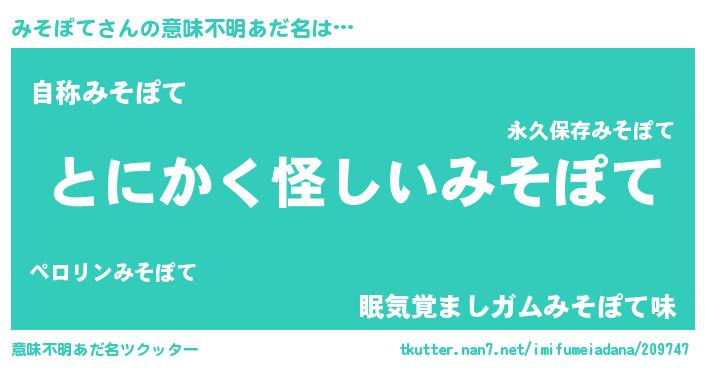 | 女子向けラノベタイトル風あだ名 | 『みそぽては平凡を望む』 |