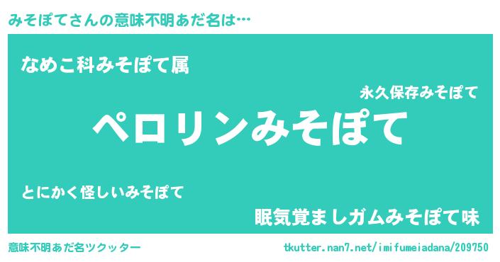 | 欧米人風あだ名 | 『マイケルみそぽて』『ダニエルみそぽて』 |