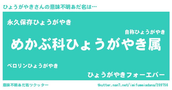 | 料理風あだ名 | 『ひょうがやきごはん』 |