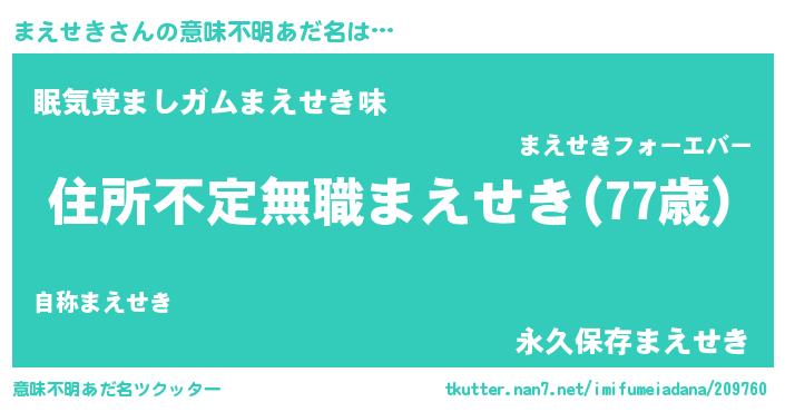 | ヘコむあだ名 | 『まえせき(苦笑)』『酢こんぶ』 |