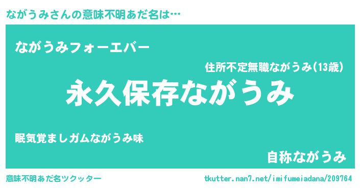 | 男性向けラノベタイトル風あだ名 | 『ながうみという概念が存在しない退屈な世界 』 |