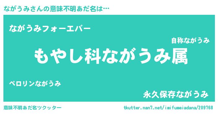 | 男性向けラノベタイトル風あだ名 | 『転生したらながうみだった件』 |