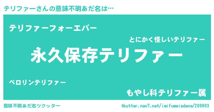 | ヘコむあだ名 | 『テリファー(小並感)』『なまこ酢』 |