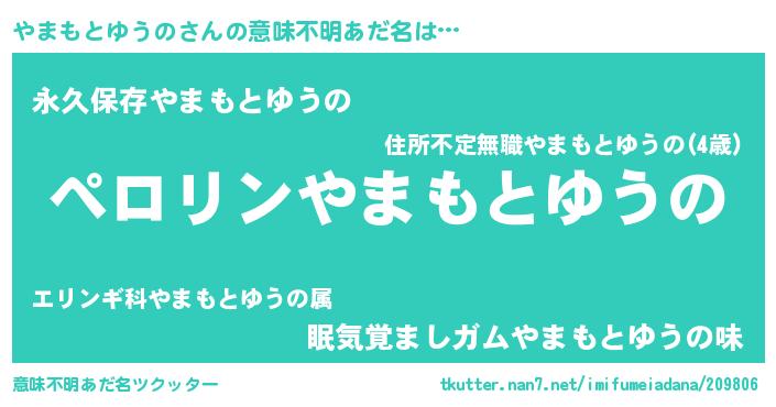 | 男性向けラノベタイトル風あだ名 | 『やまもとゆうのの憂鬱』 |