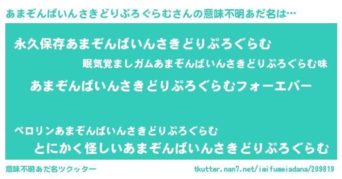 | ファンタジー風あだ名 | 『エターナルアマゾンバインサキドリプログラムー』 |