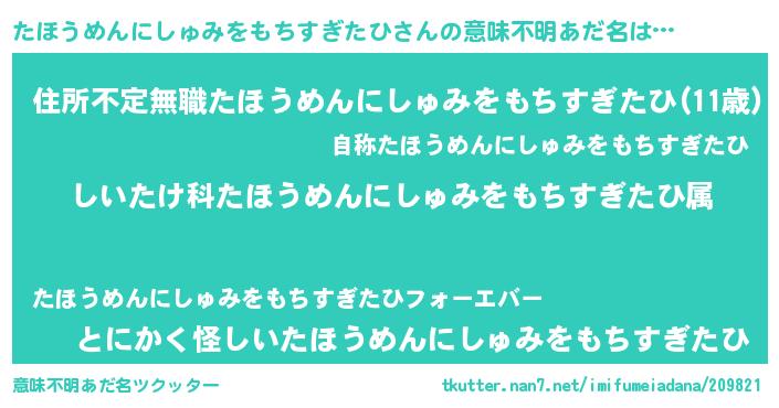 | 料理風あだ名 | 『たほうめんにしゅみをもちすぎたひごはん』 |