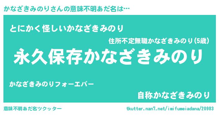 | 男性向けラノベタイトル風あだ名 | 『かなざきみのりという概念が存在しない退屈な世界 』 |