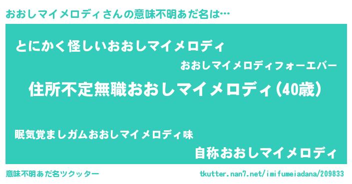 | ポケモン風あだ名 | 『オーオイ』『ヒオオシマイメロディ』 |