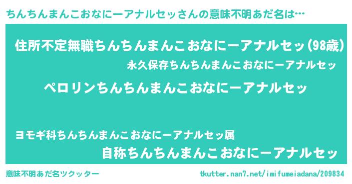 | ヒーロー風カッコイイあだ名 | 『スーパーチンチンマンコオナニーアナルセッ』 |