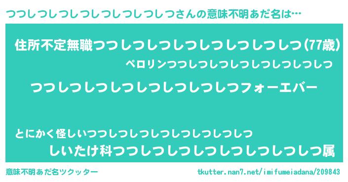 | 男性向けラノベタイトル風あだ名 | 『やはりつつしつしつしつしつしつしつしつの青春ラブコメはまちがっている 』 |