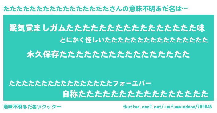 | 胡散臭い通販商品みたいなあだ名 | 『絶対に幸福をもたらす健康食品…その名も「たたたたたたたたたたたたたたたた」』 |