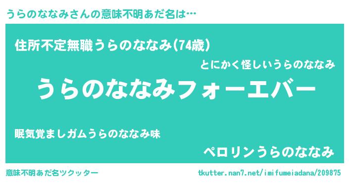 | ファンタジー風あだ名 | 『エターナルウラノナナミー』 |