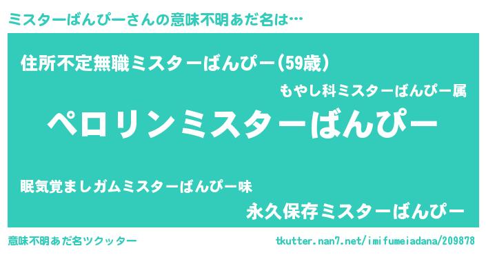 | 恥ずかしいあだ名 | 『プリティーミスターばんぴー』 |