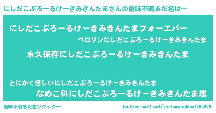 | 可愛いあだ名 | 『にしだこぶろーるけーきみきんたまママ』 |