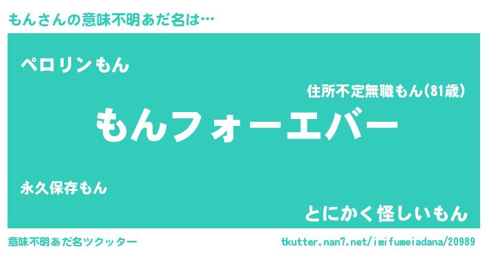 | 女子向けラノベタイトル風あだ名 | 『もん伯爵の花嫁』『もんは平凡を望む』 |