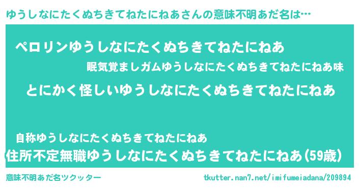 | ポケモン風あだ名 | 『ヒユウシナニタクヌチキテネタニネア』 |