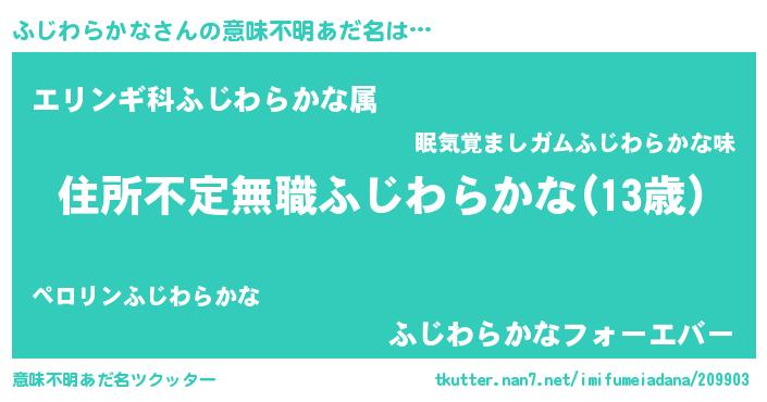| 男性向けラノベタイトル風あだ名 | 『魔弾の王とふじわらかな』 |