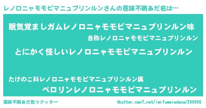 | ポケモン風あだ名 | 『ヒレノロニャモモピマニュプリンルン』 |