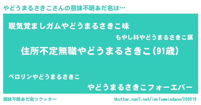 | 男性向けラノベタイトル風あだ名 | 『この素晴らしい世界にやどうまるさきこを!』 |