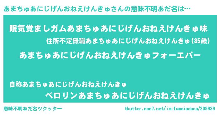 | 欧米人風あだ名 | 『あまちゅあにじげんおねえけんきゅクリステル』 |