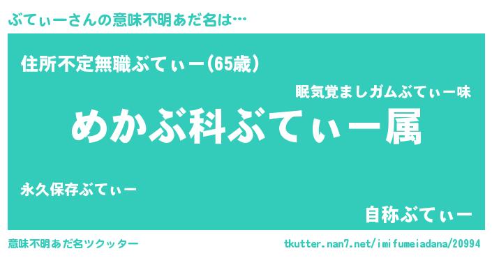 | ヘコむあだ名 | 『ぶてぃー(爆)』『なまこ酢』 |